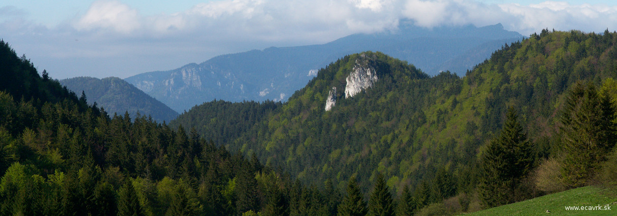 Májový výhľad na Veľkú skalu a Choč z Vlkolínskych lúk.