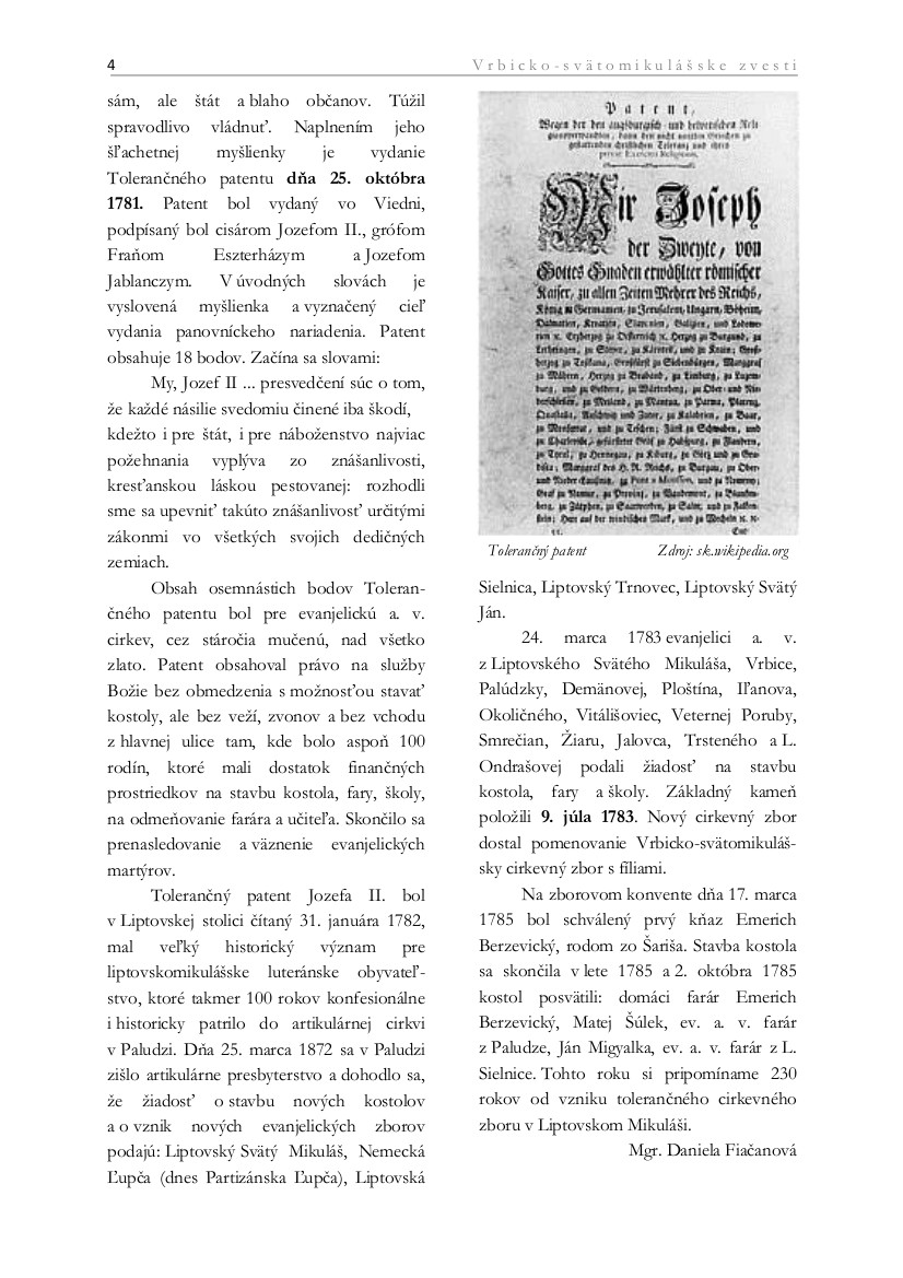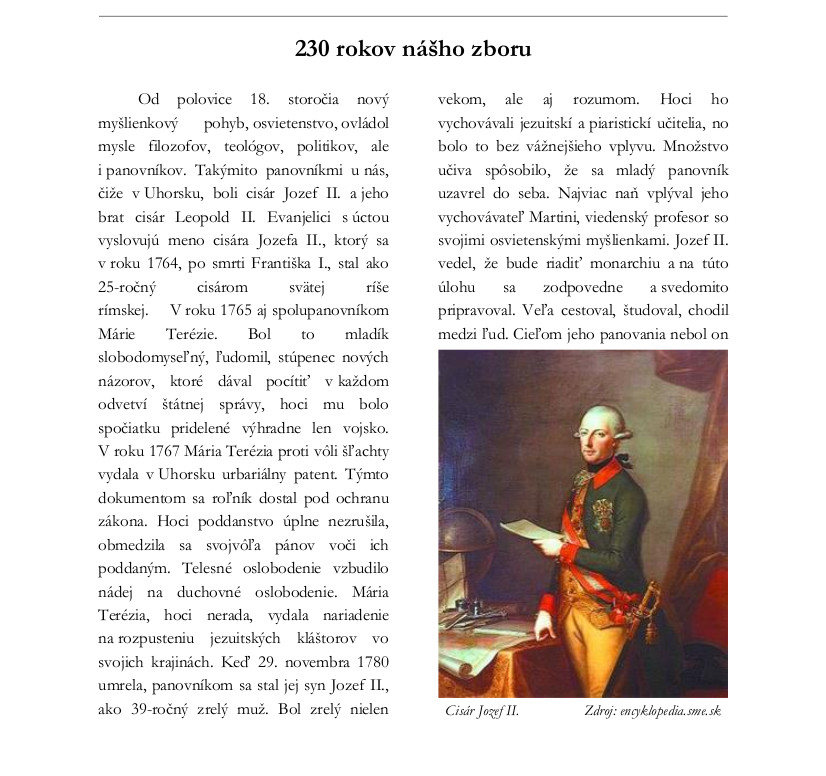 6.11.2013 - www.ecavlm.sk Od polovice 18. storočia nový myšlienkový pohyb, osvietenstvo, ovládol mysle filozofov, teológov, politikov, ale i panovníkov. Takýmito panovníkmi u nás, čiže v Uhorsku, boli cisár Jozef II. a jeho brat cisár Leopold II. Evanjelici... Viac: 1. strana 2. strana www.ecavlm.sk
